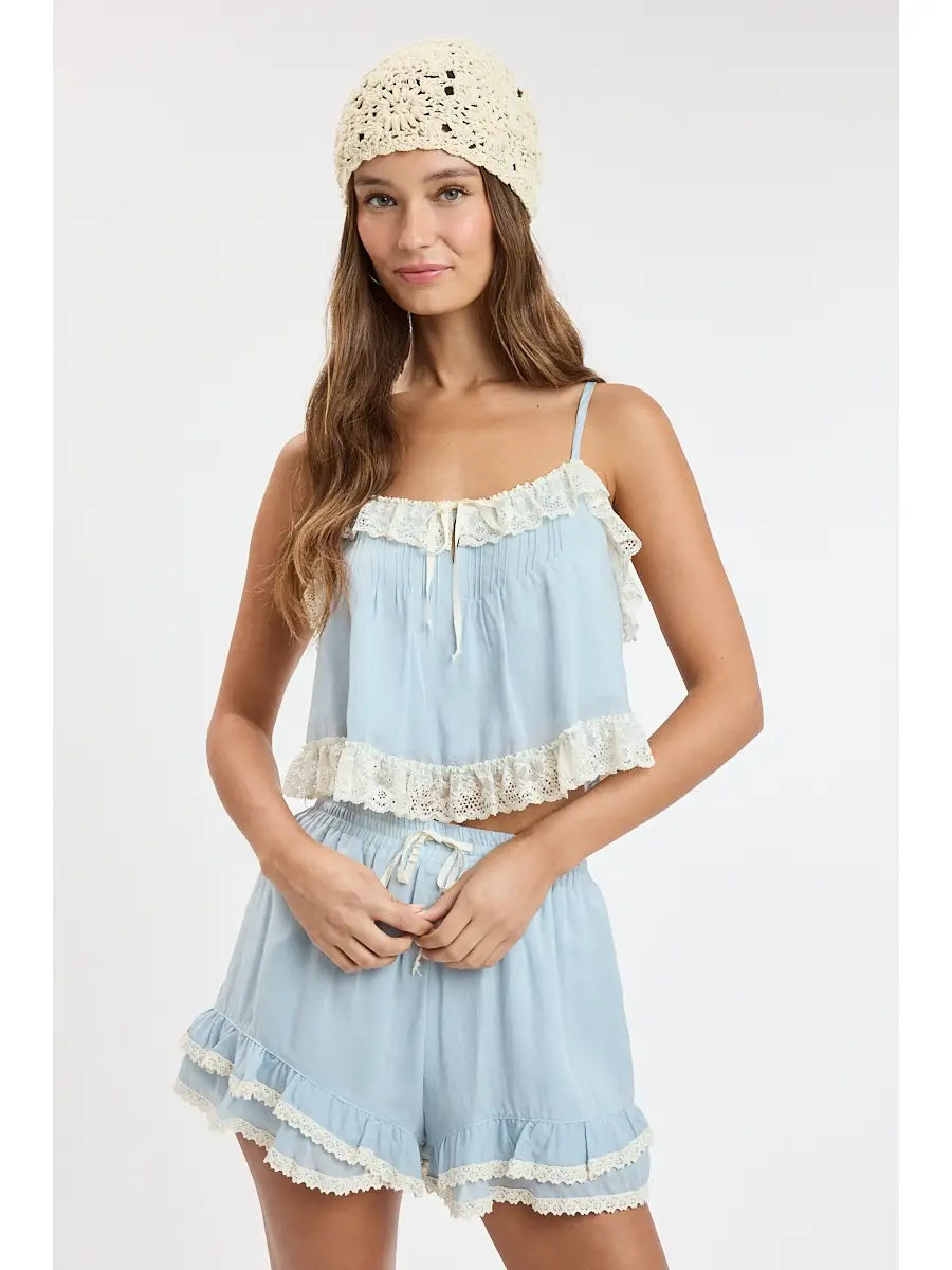 Baby Blue Lace Shorts Set