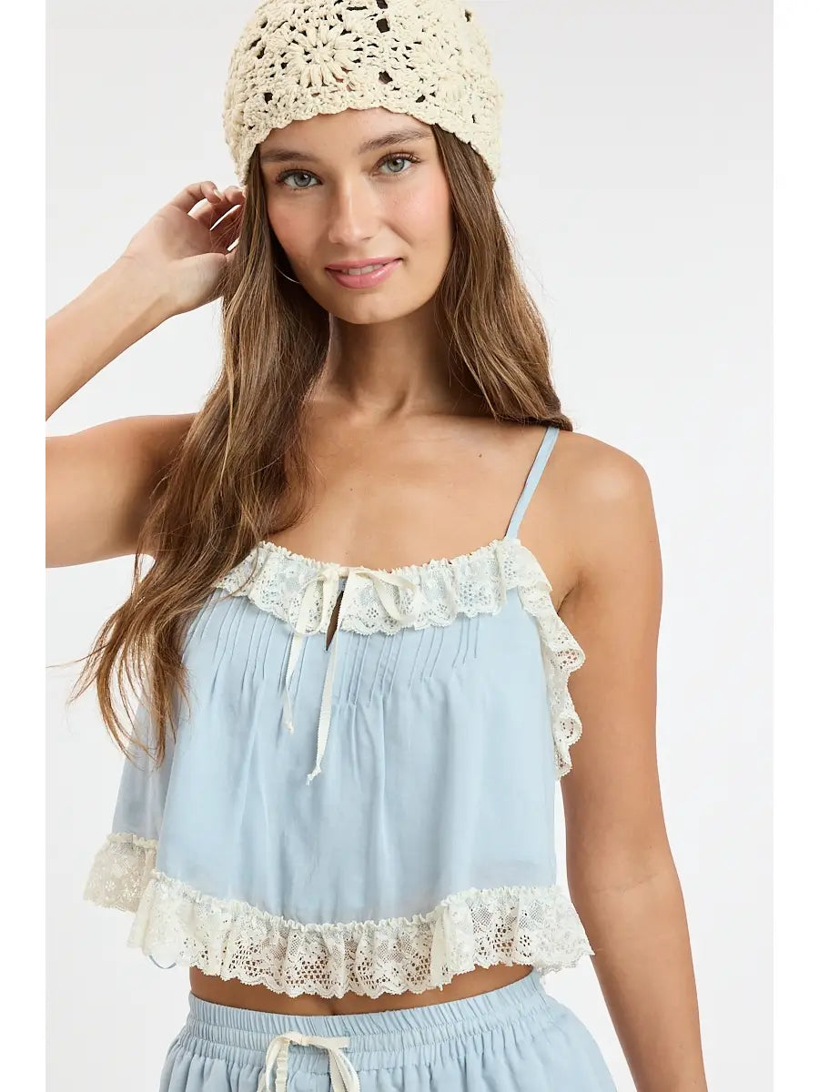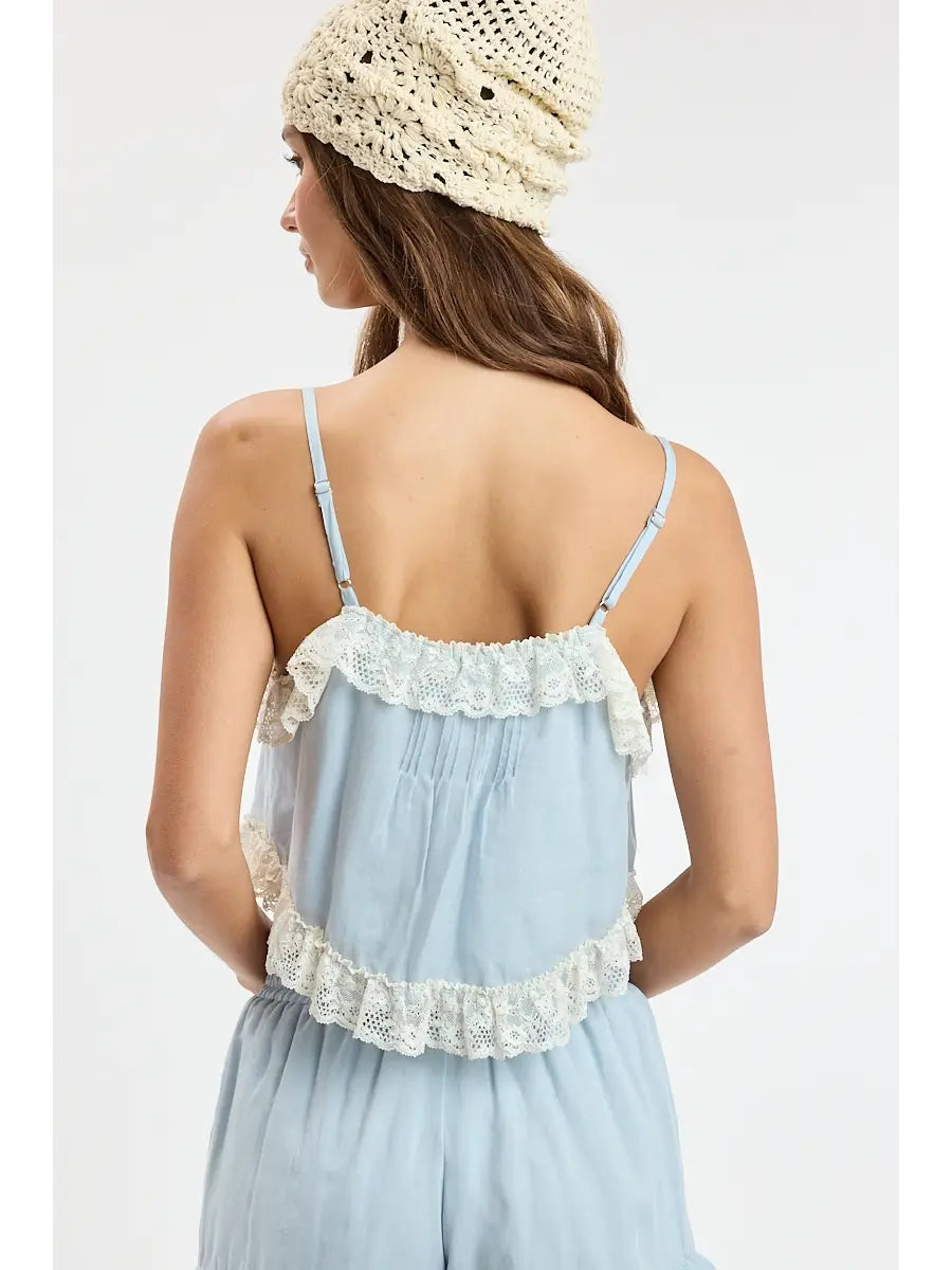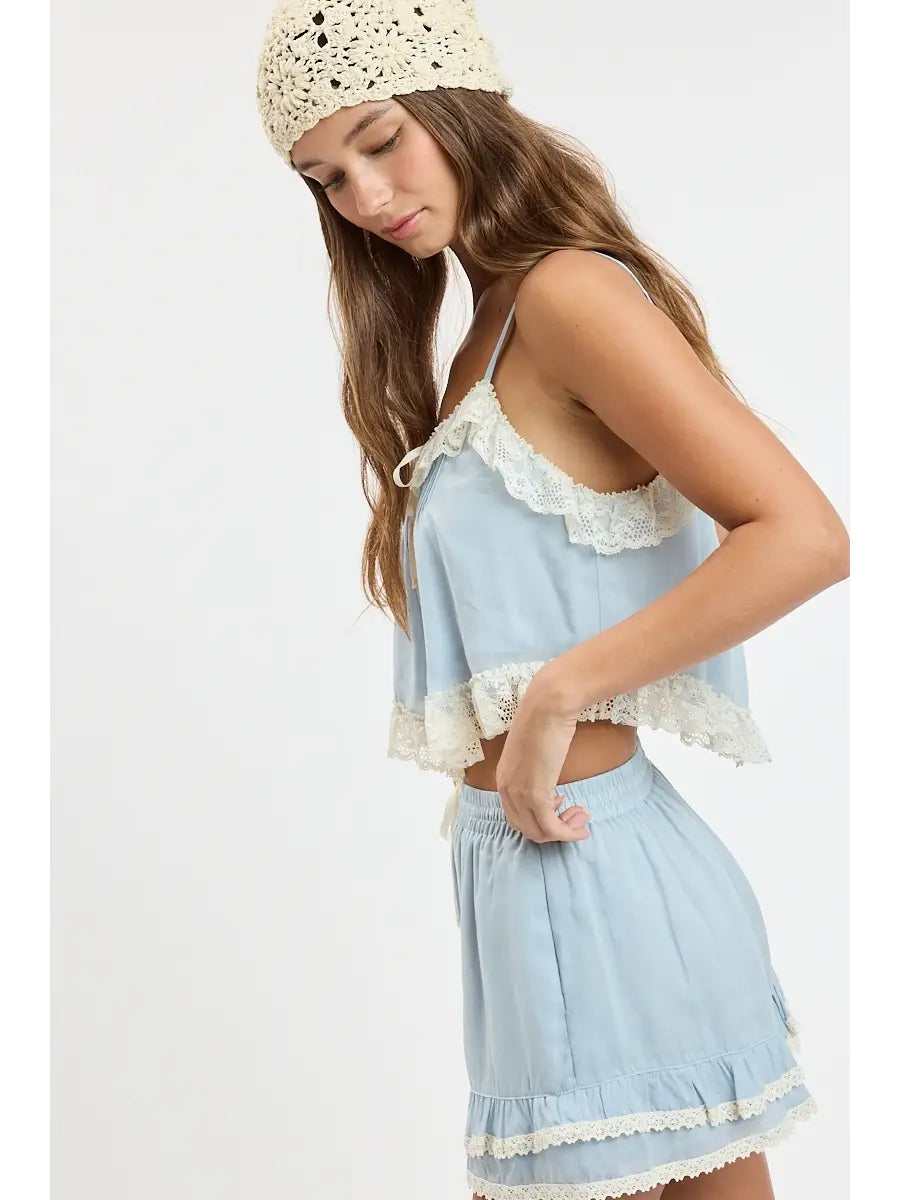• Baby blue and lace trim cami and shorts set