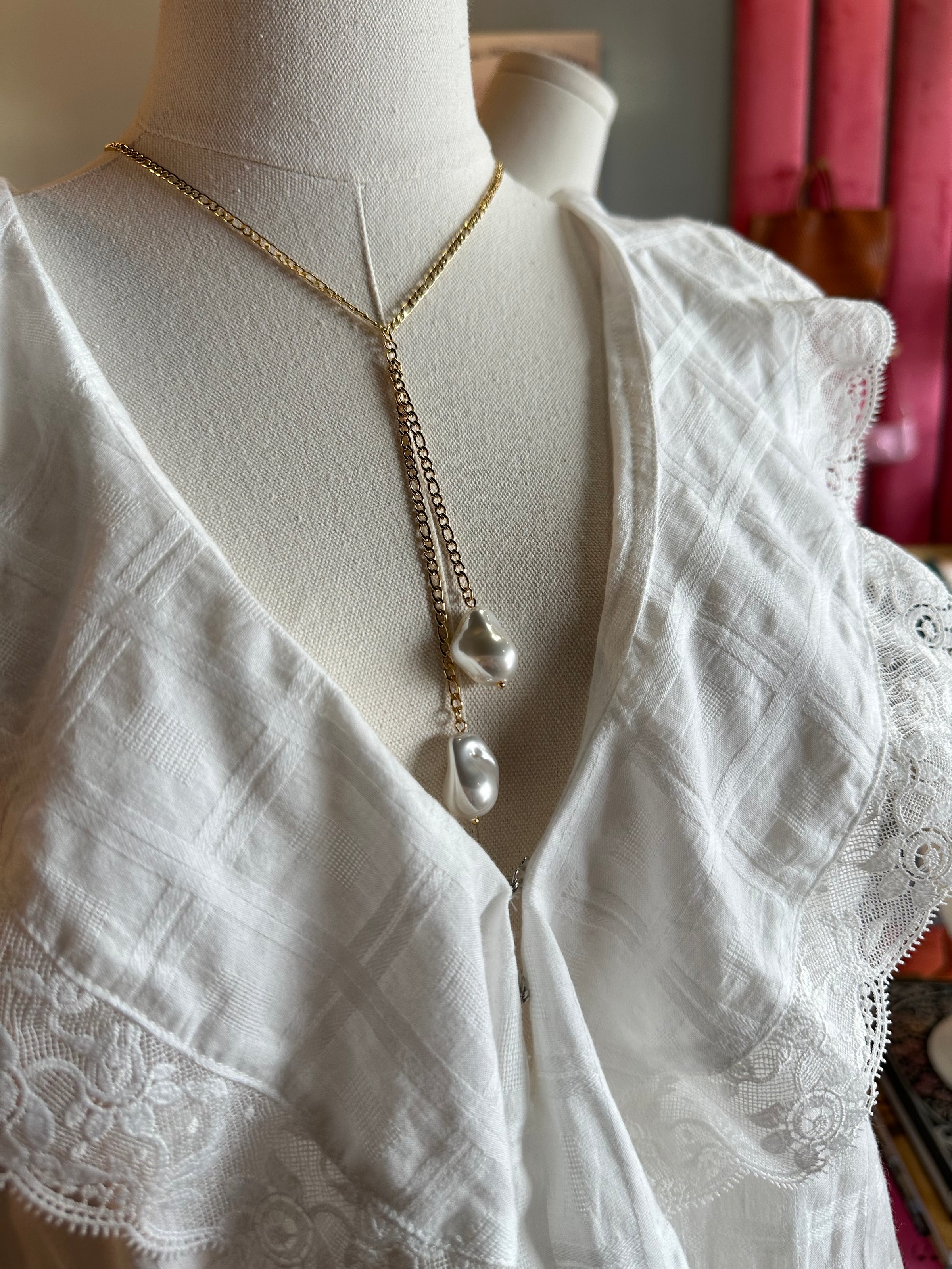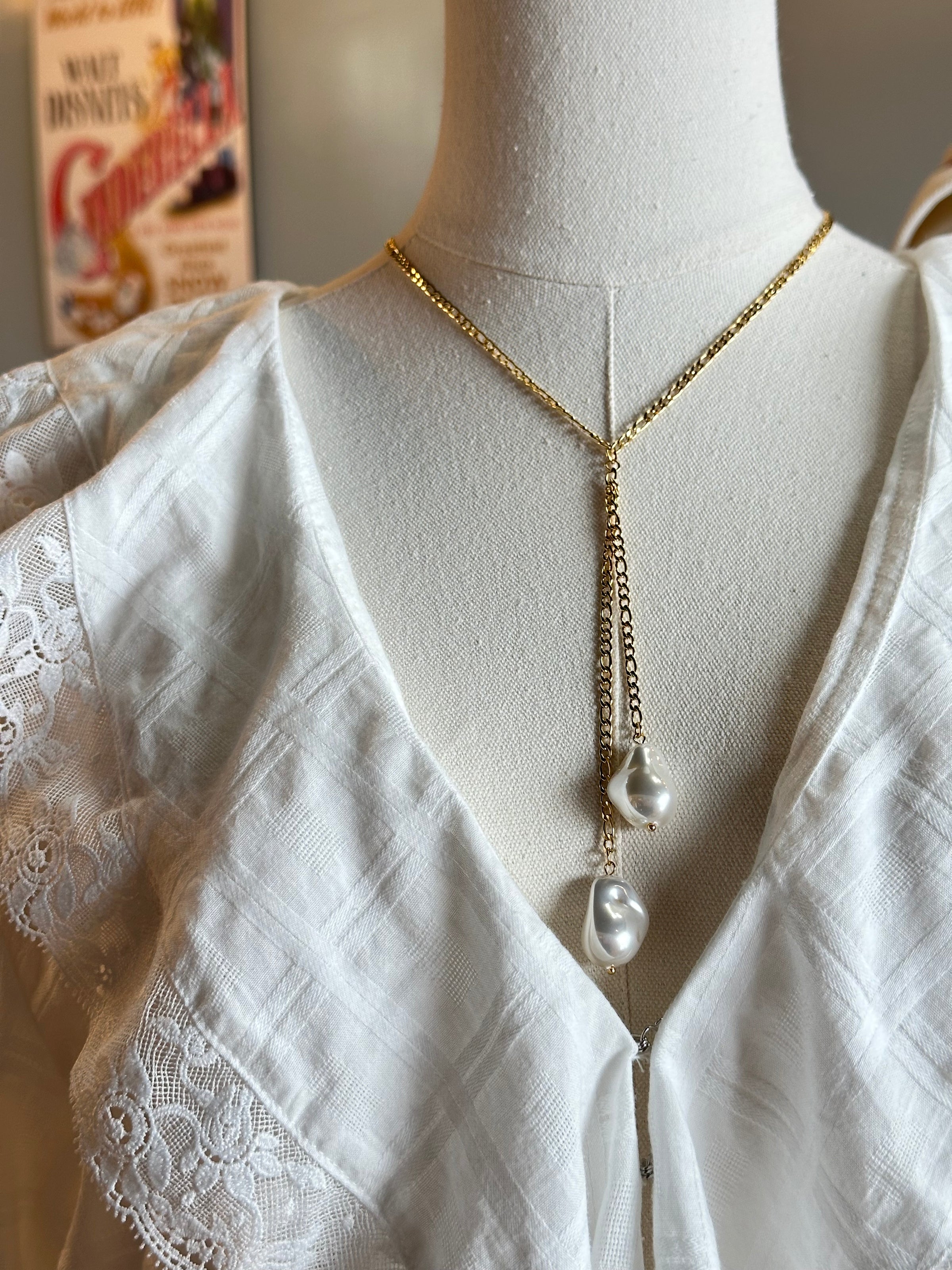 - 18K Gold Non-Tarnish Baroque Pearl Necklace