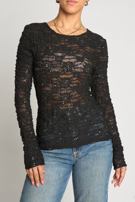 Black Sequined Lace Top