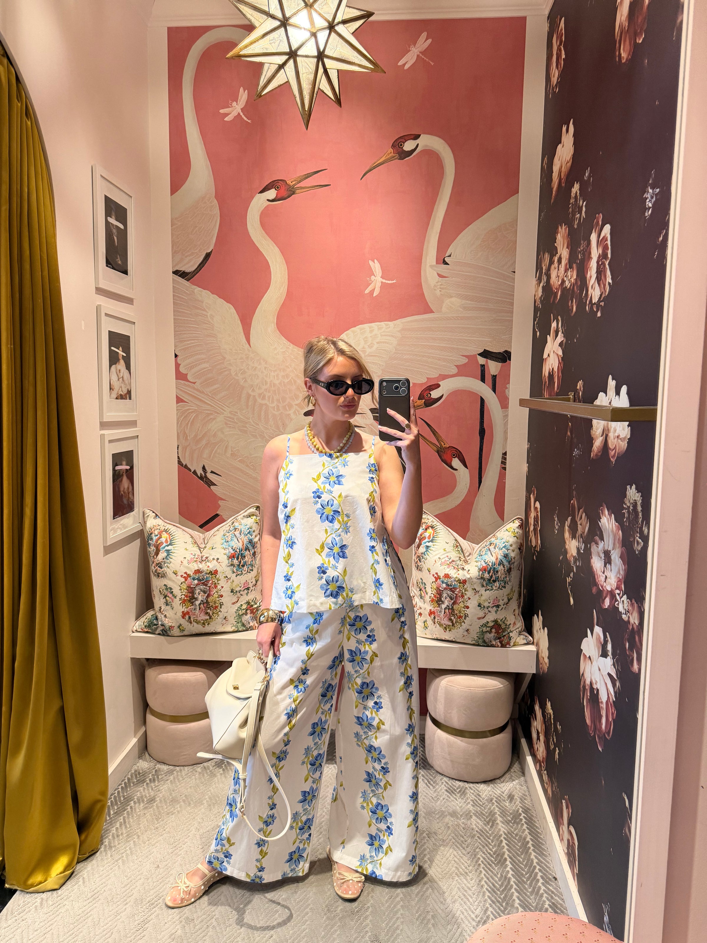 - White floral print pant set