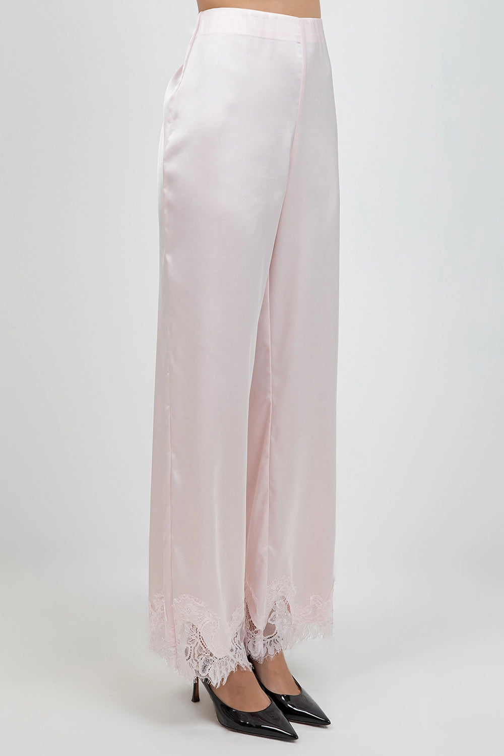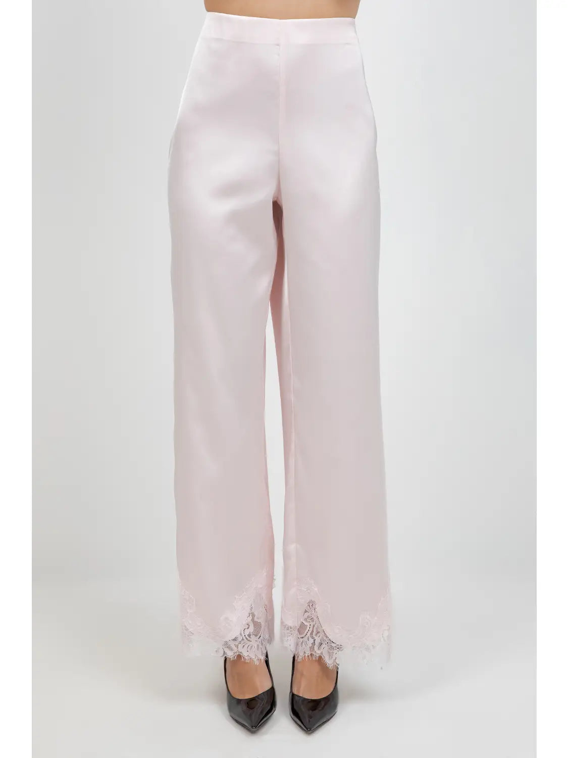 Blush Satin Lace Hem Pants