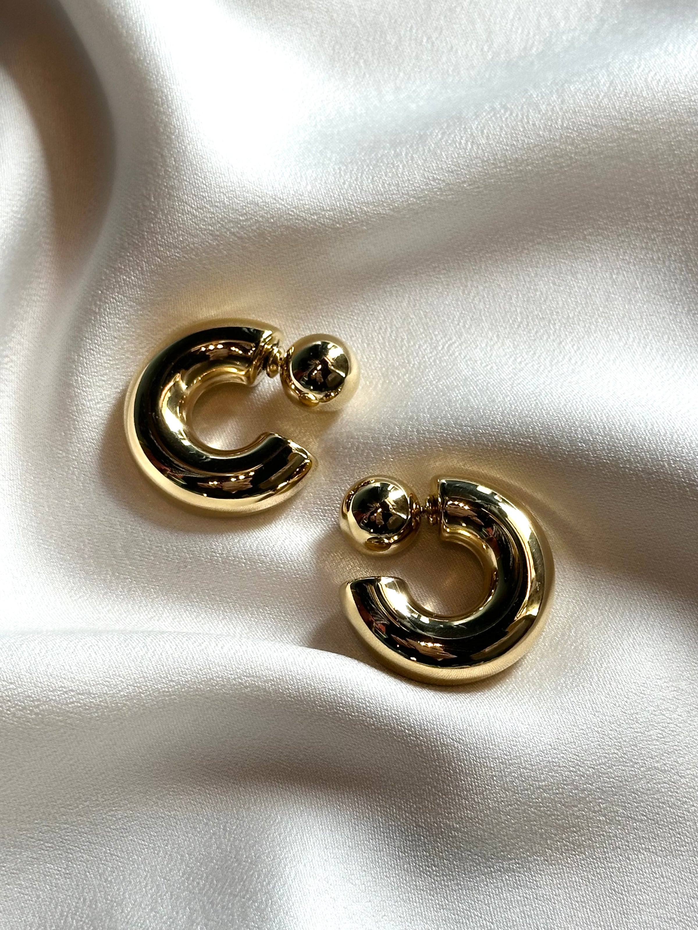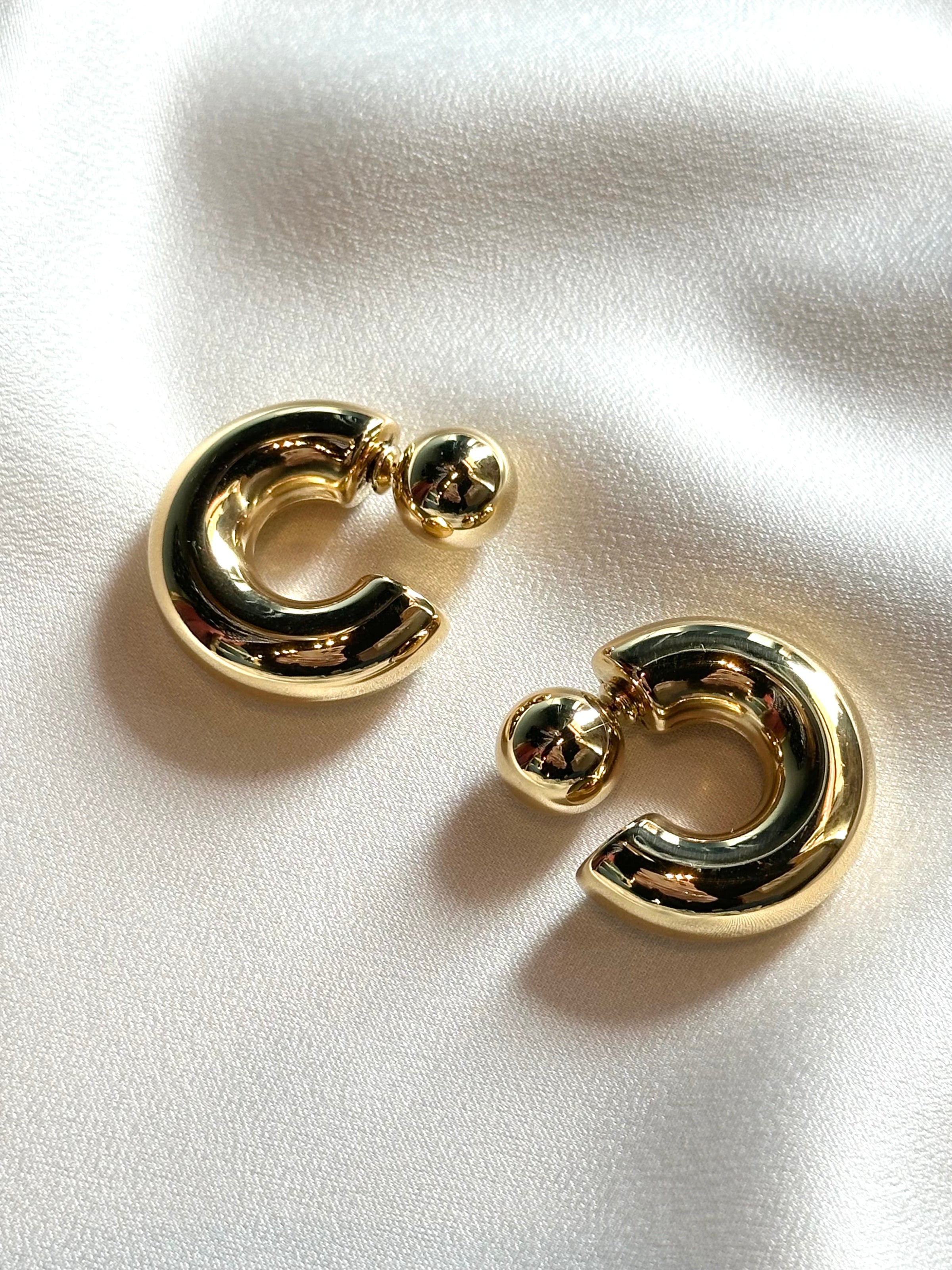 • 16K Gold Non-Tarnish Ball C Hoop Earring