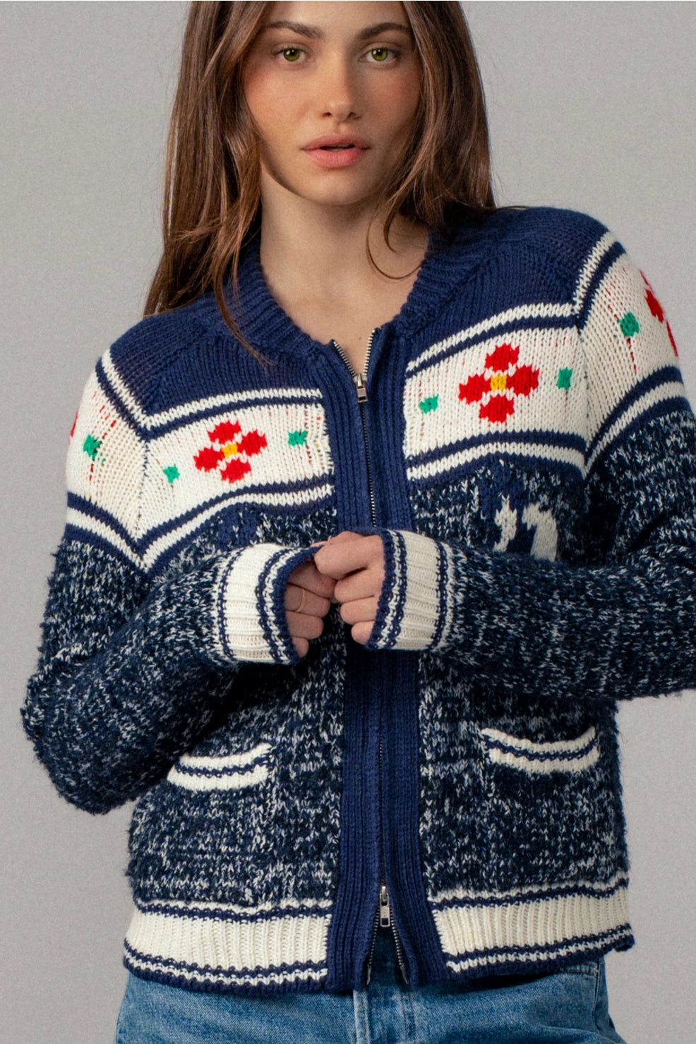 Floral Horse Zip Up Sweater