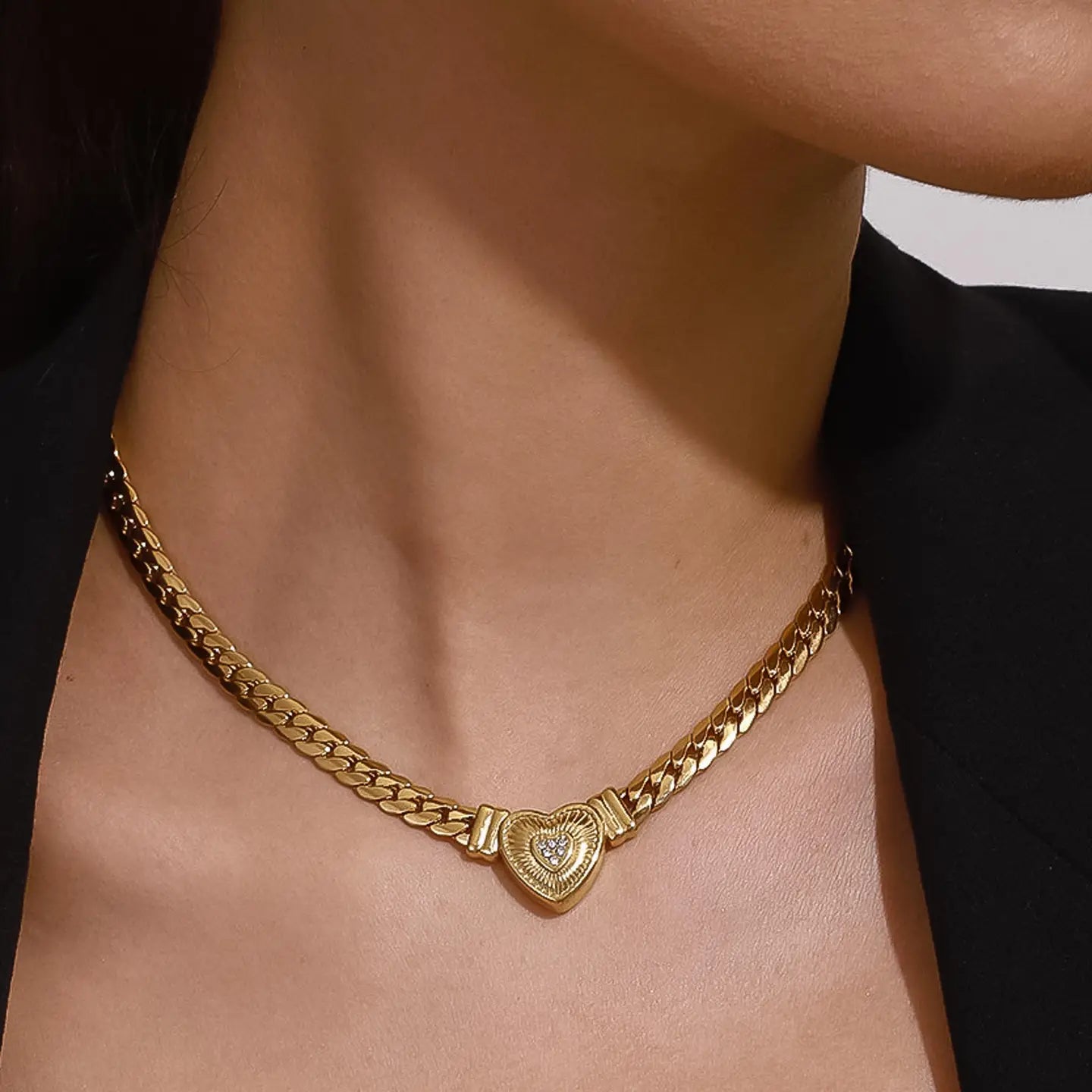 - 18K Gold Non-Tarnish Heart Pendant Chain Necklace