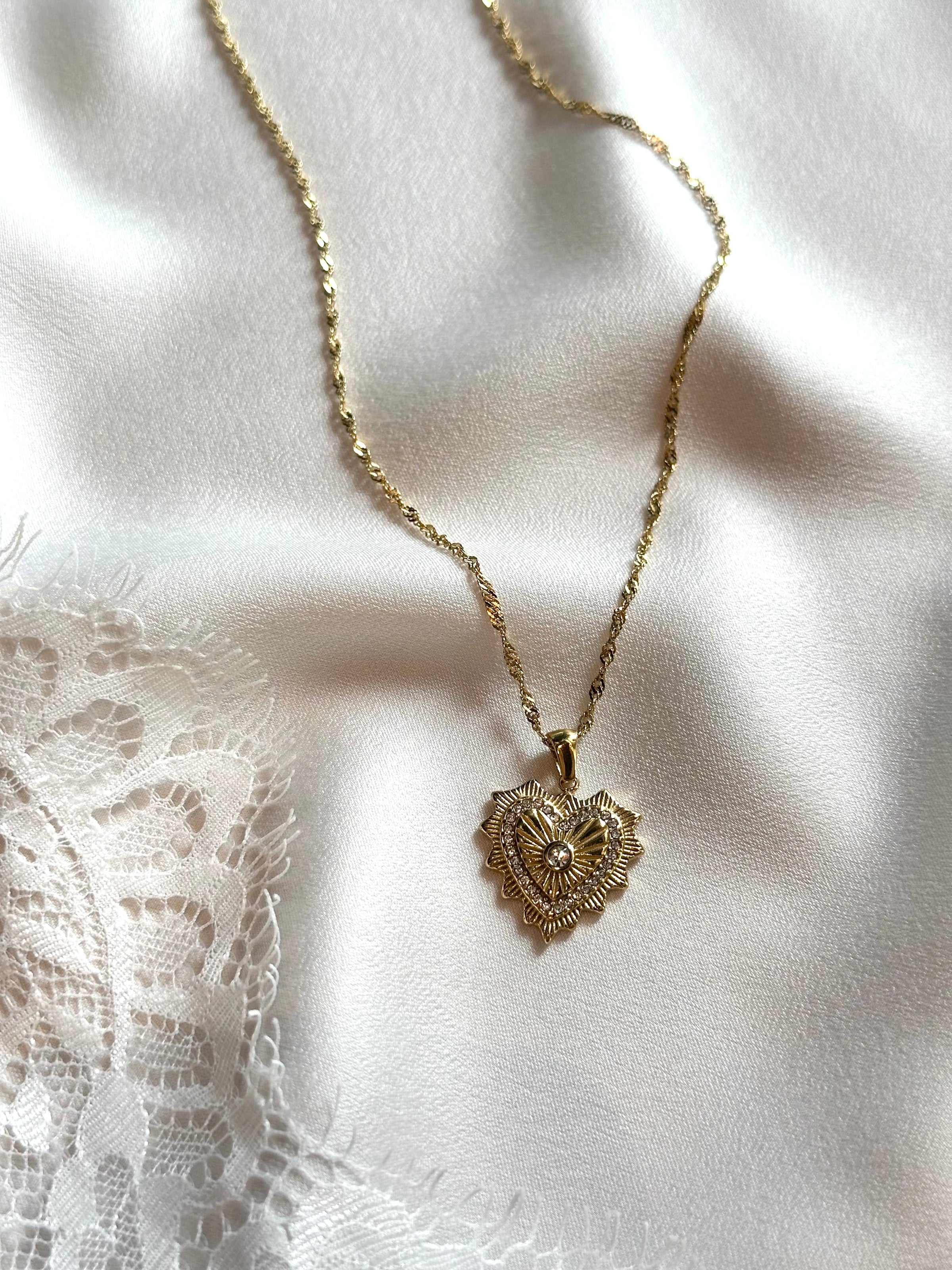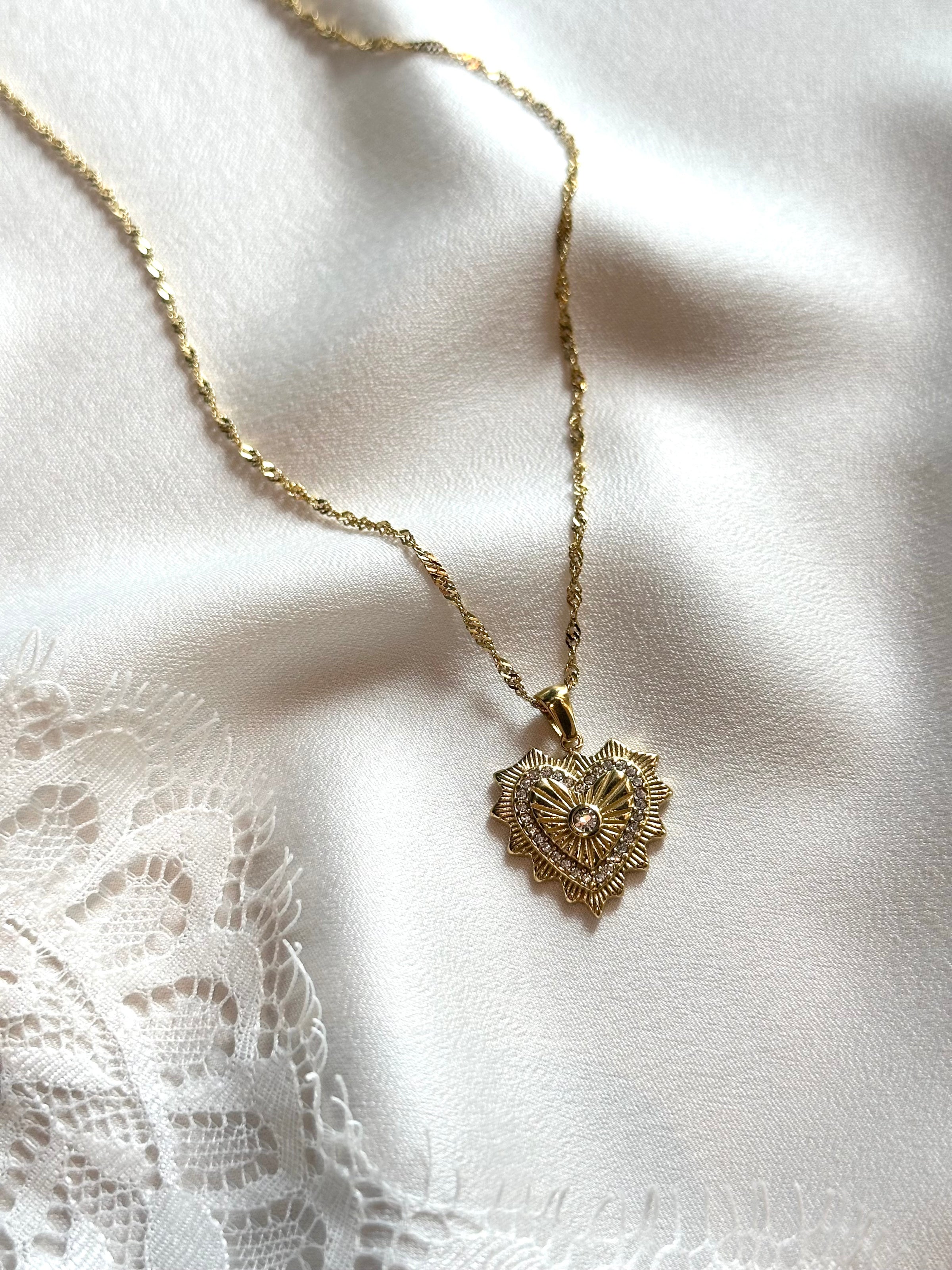 - 18K Gold Non-Tarnish CZ Heart Pendant Necklace
