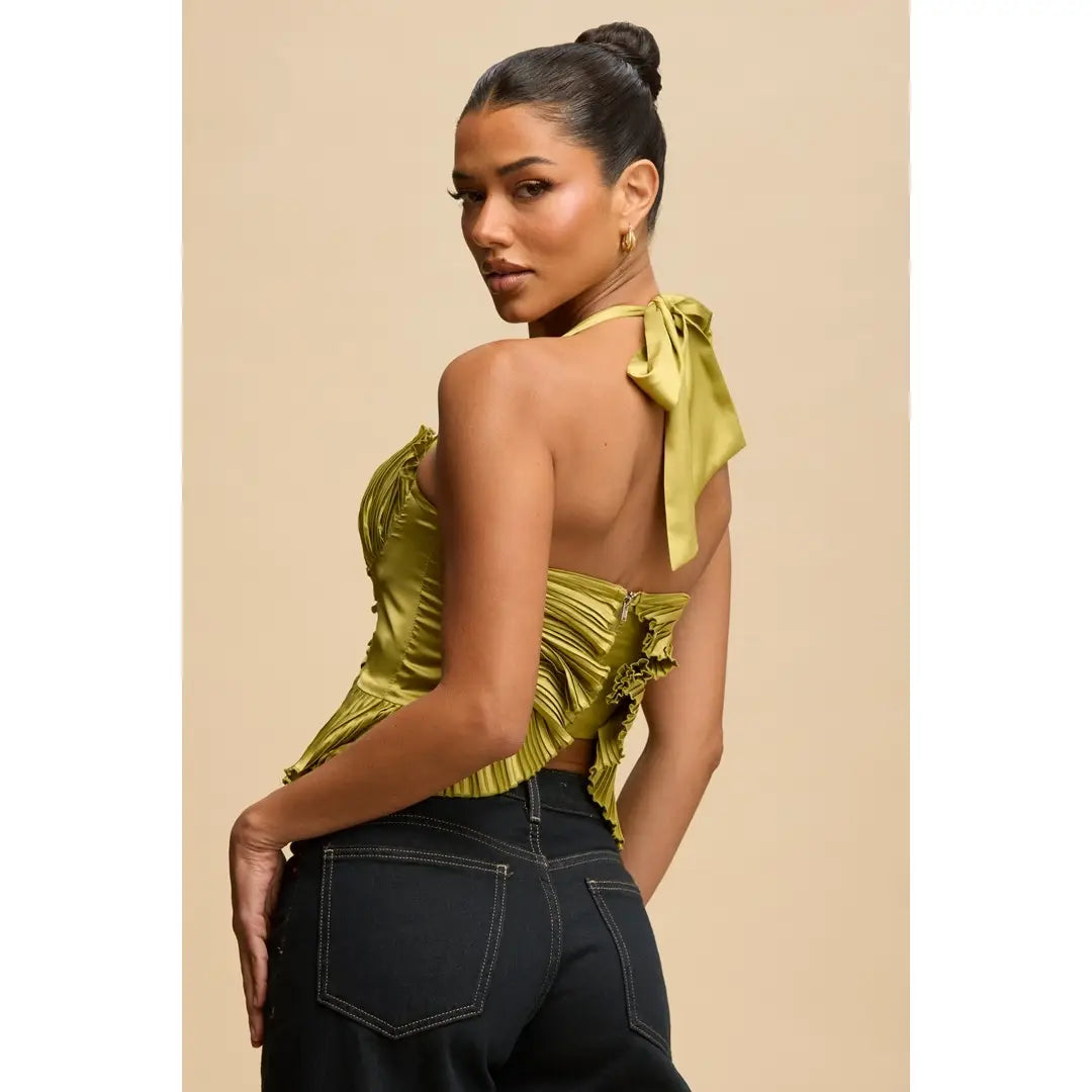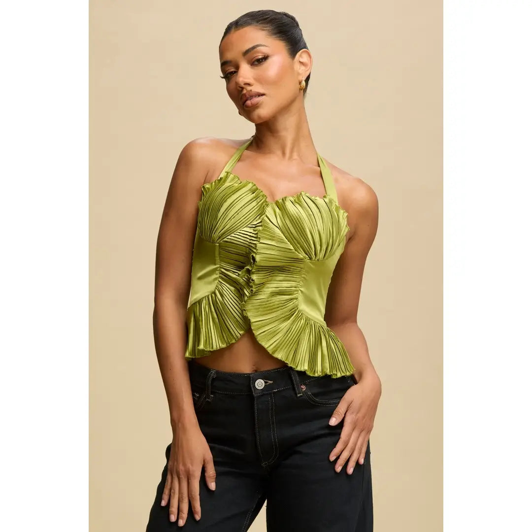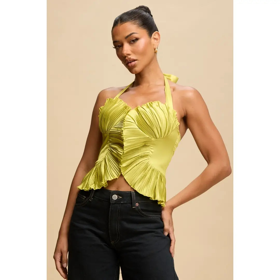 - Lime pleated halter top