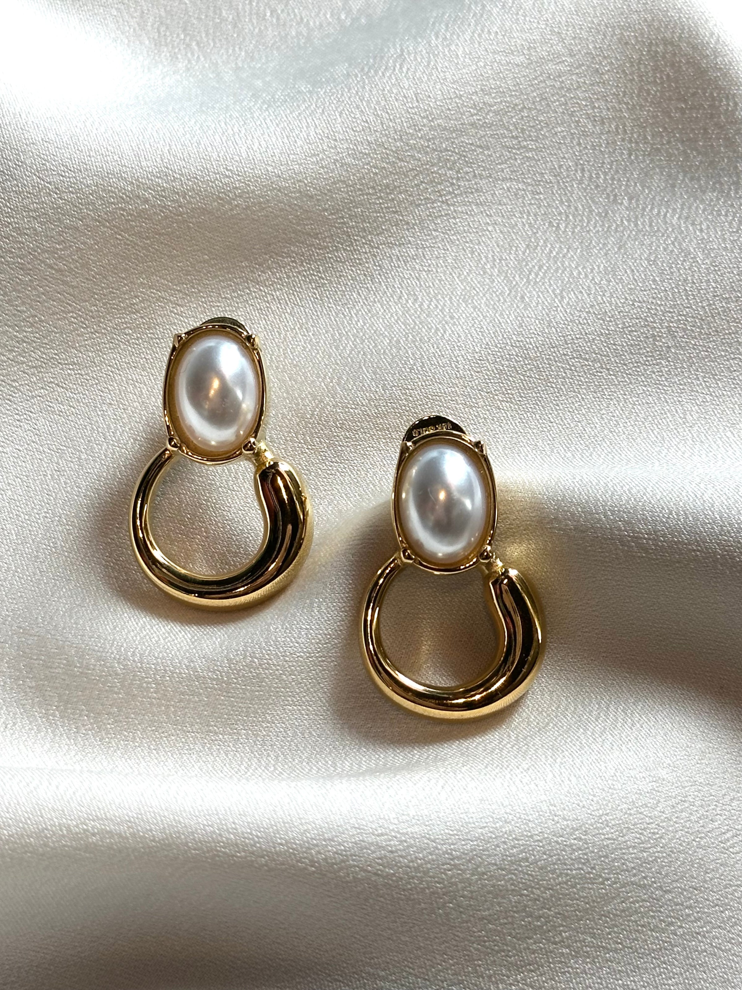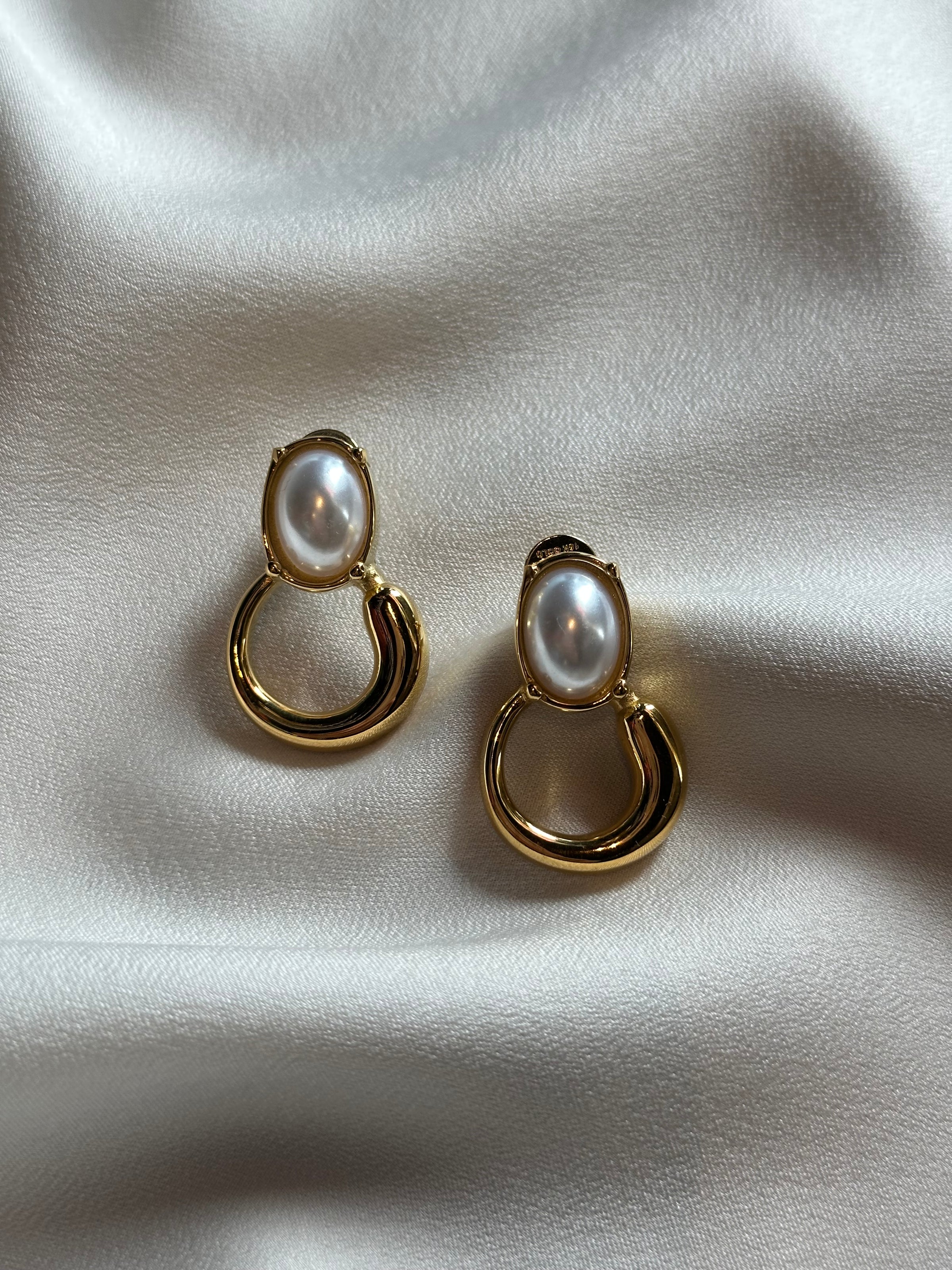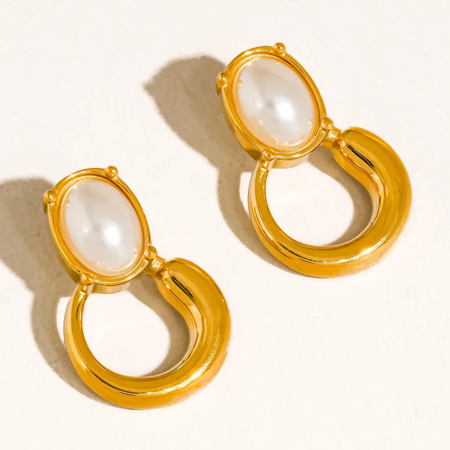 • 18K Gold Non-Tarnish Pearl Drop Earrings