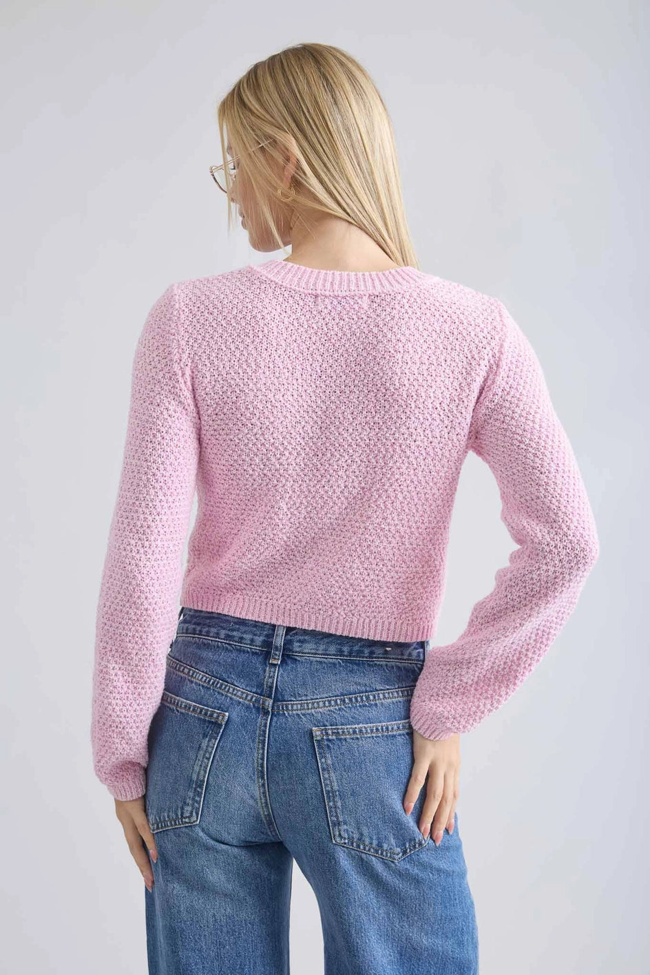 - Pink knit cardigan jacket