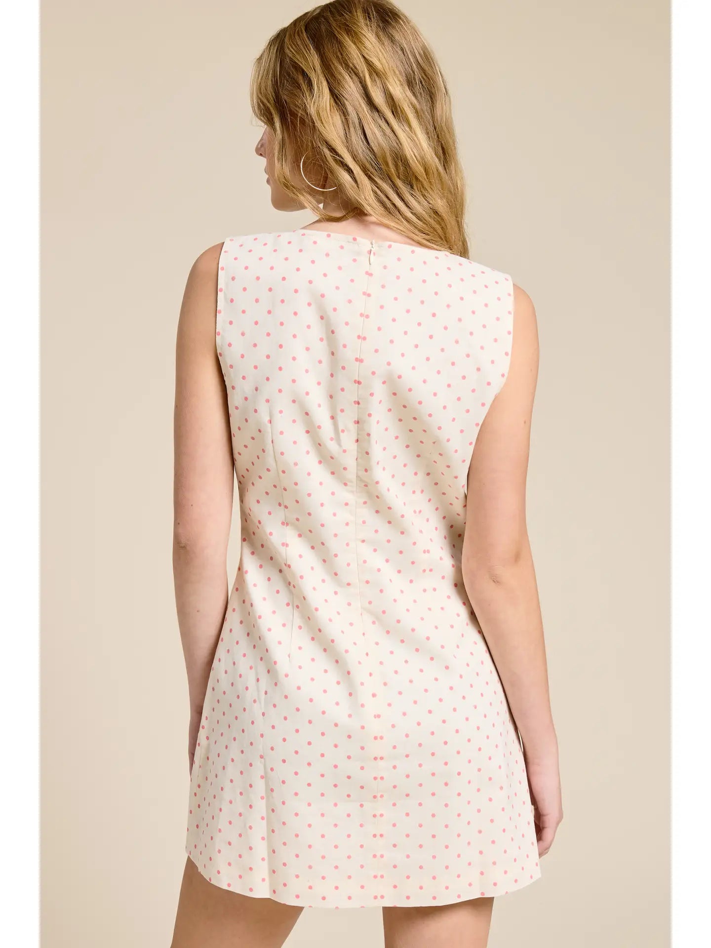 • Cream & coral polka dot mini dress with bows
