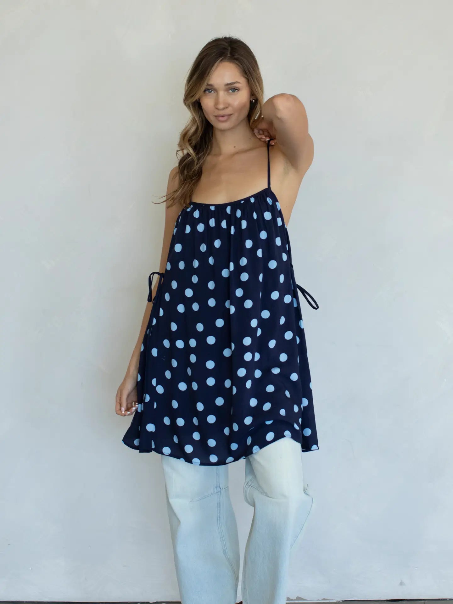 Designed in a playful polka dot print, this mini-length style brings effortless charm to any day. With spaghetti straps and a relaxed fit, the Sadie Polka Dot Mini Dress drapes beautifully and moves with you, giving that easy, carefree feel we can’t get enough of.