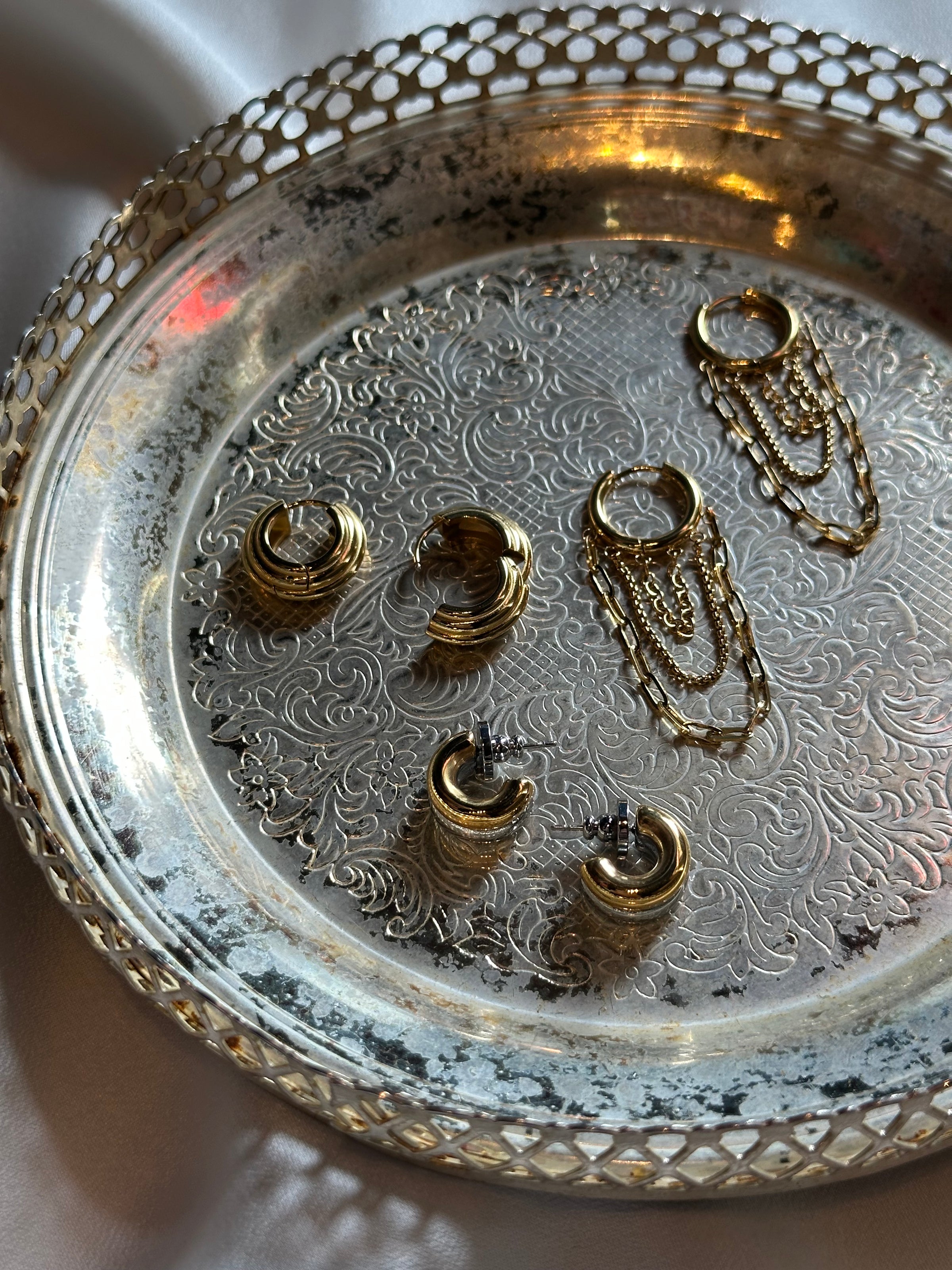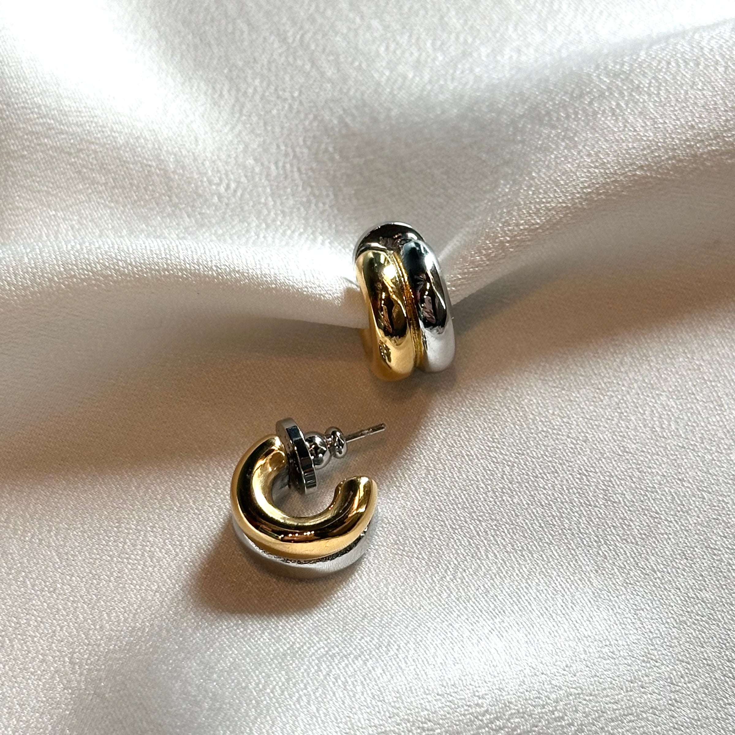 Two Tone Mini C Hoop Earrings