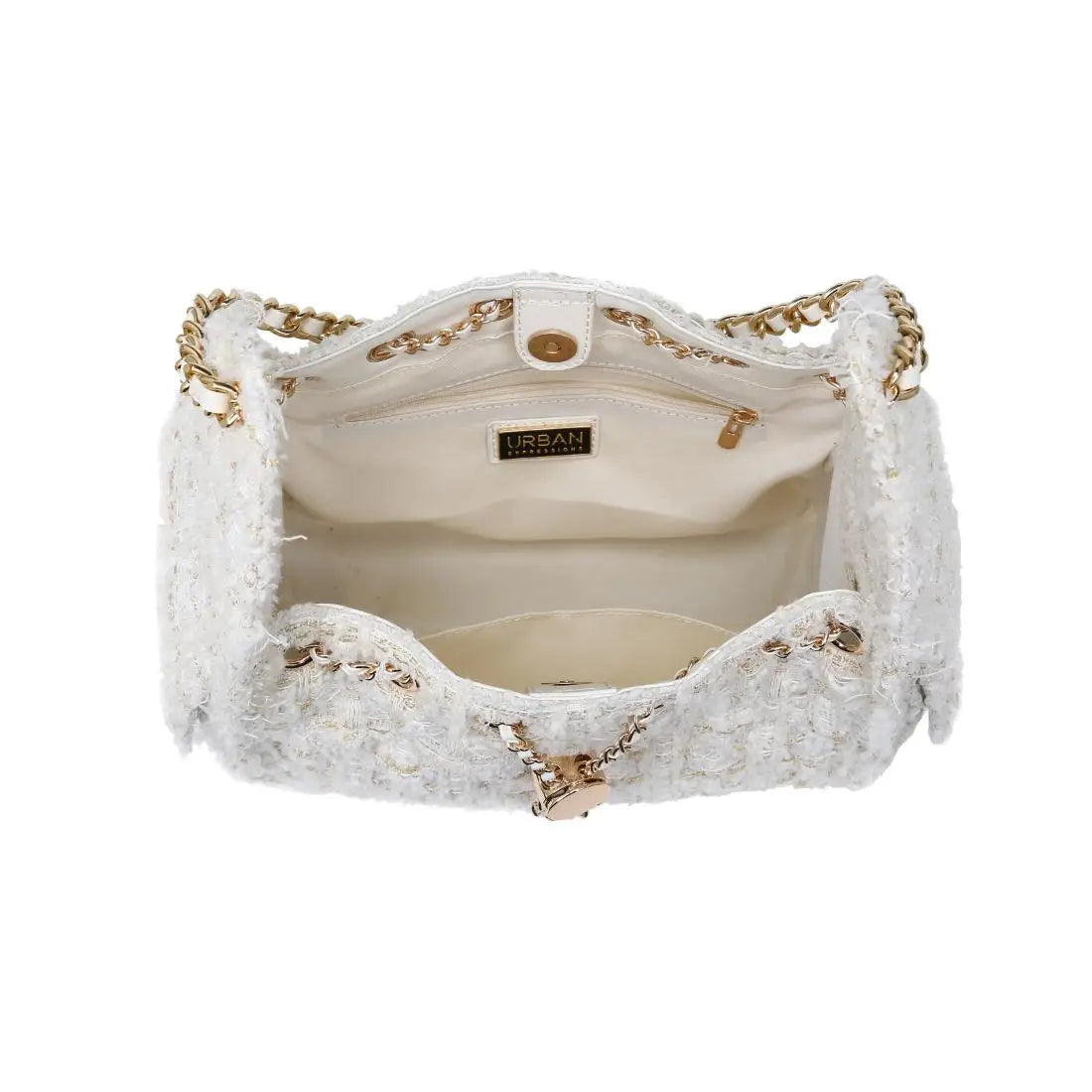 White Bouclé Tweed Shoulder Purse