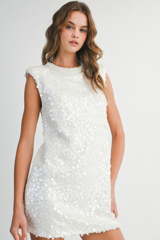 Home › What's New! › White Pearl Sequin Mini Dress