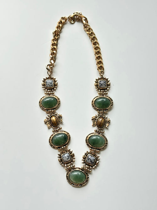 Vintage Sage Gem Statement Necklace