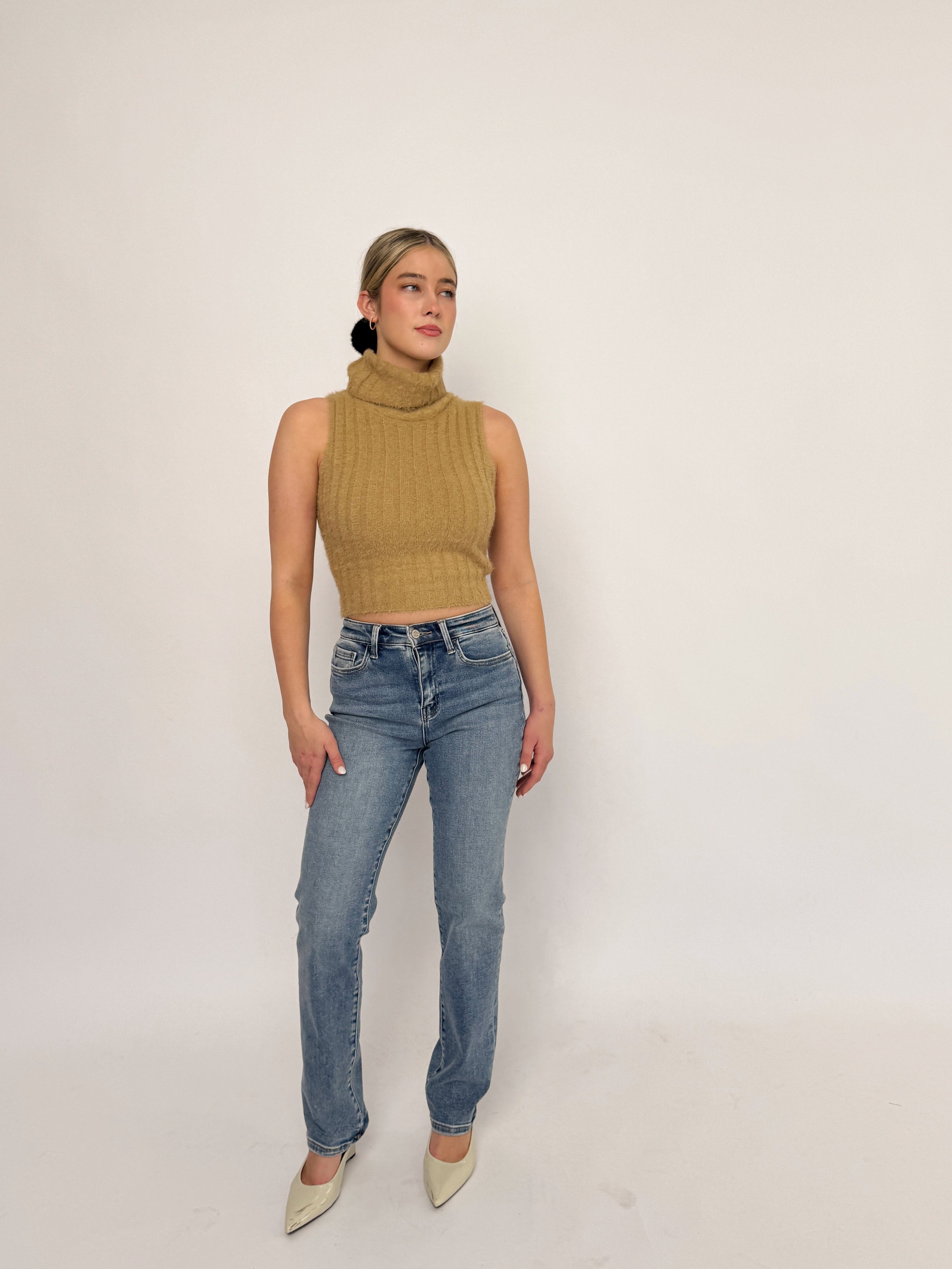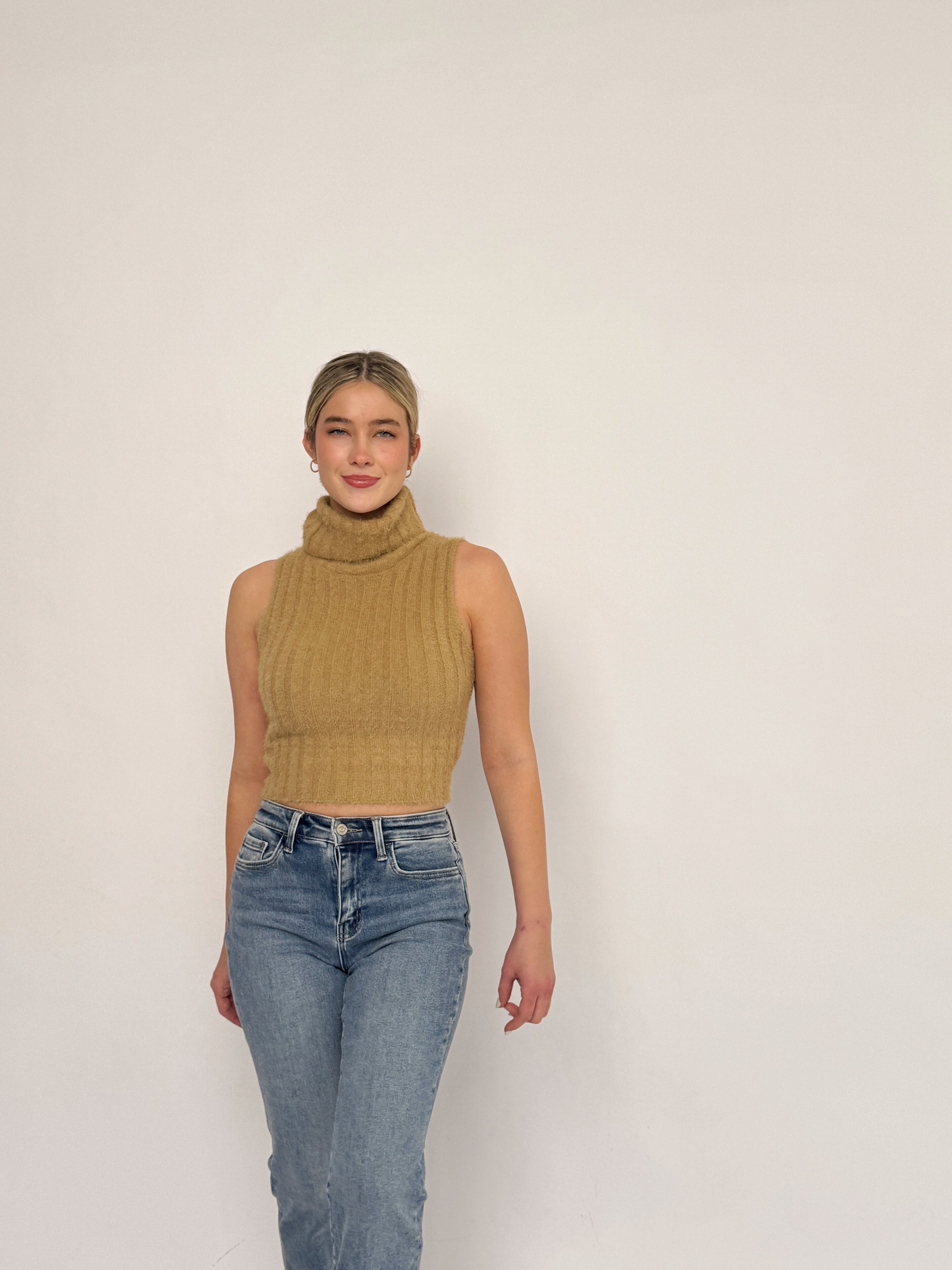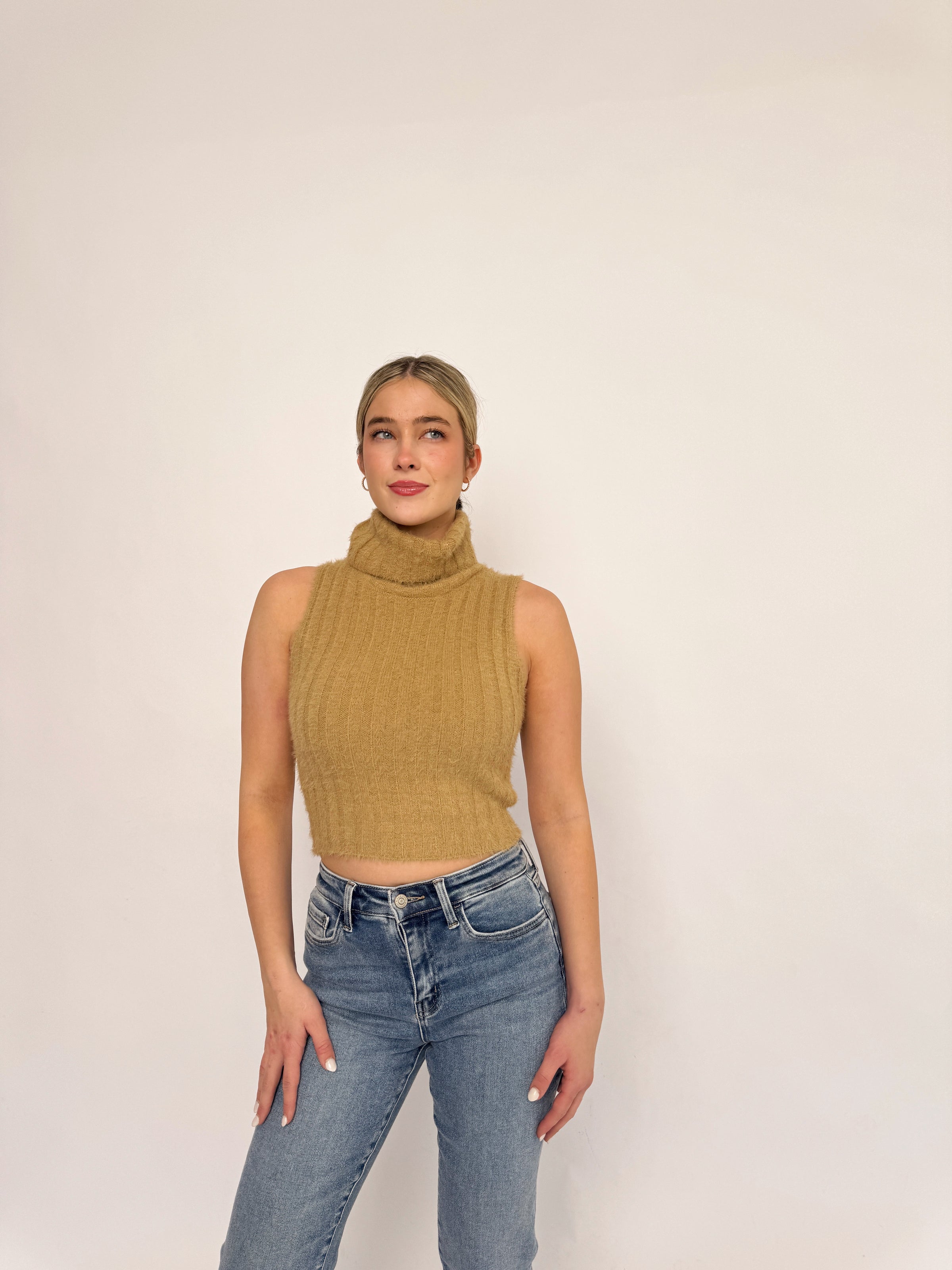 Sand Sleeveless Turtleneck Sweater