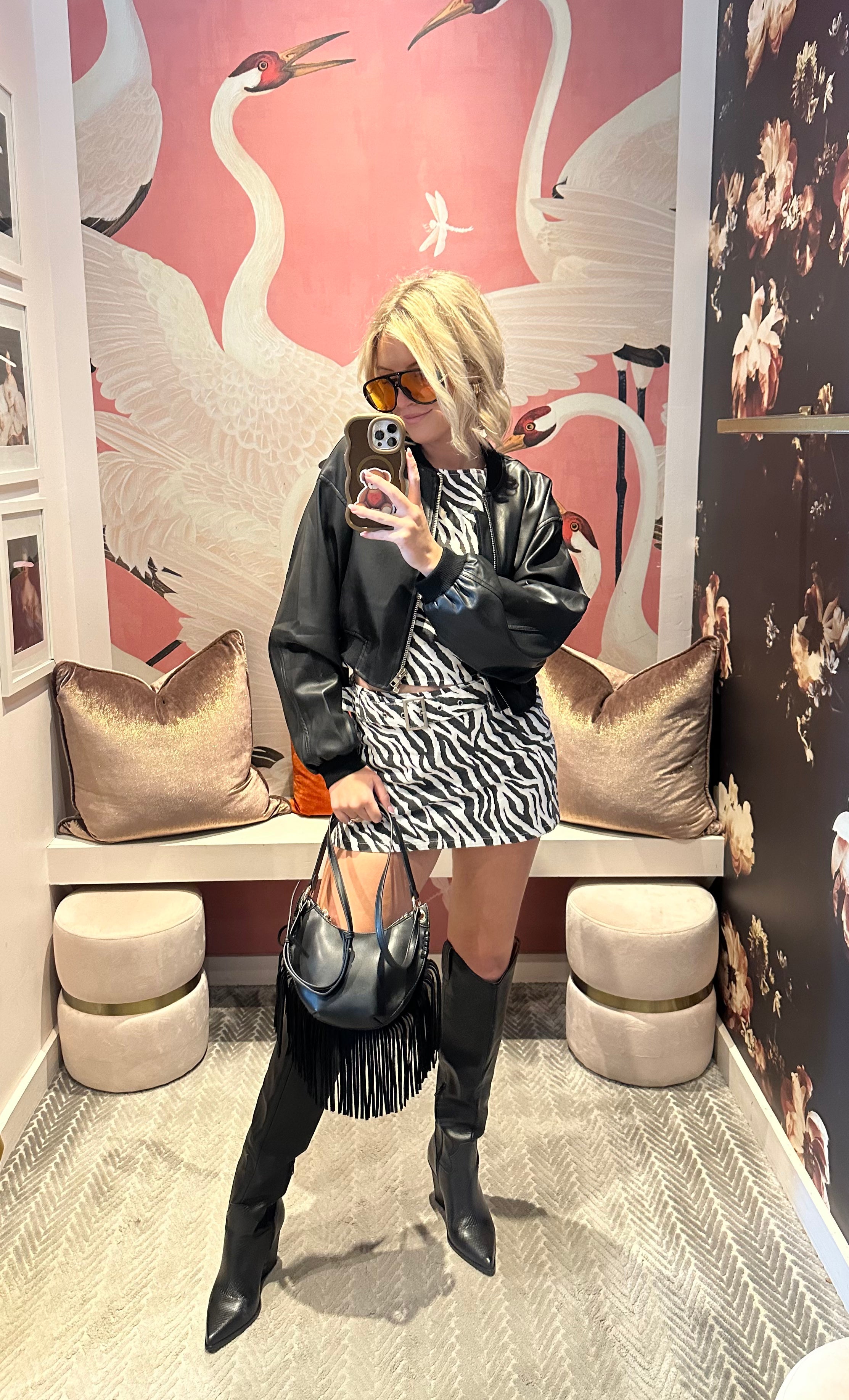 - Pairs perfectly with our Zebra Belted Mini Skirt!