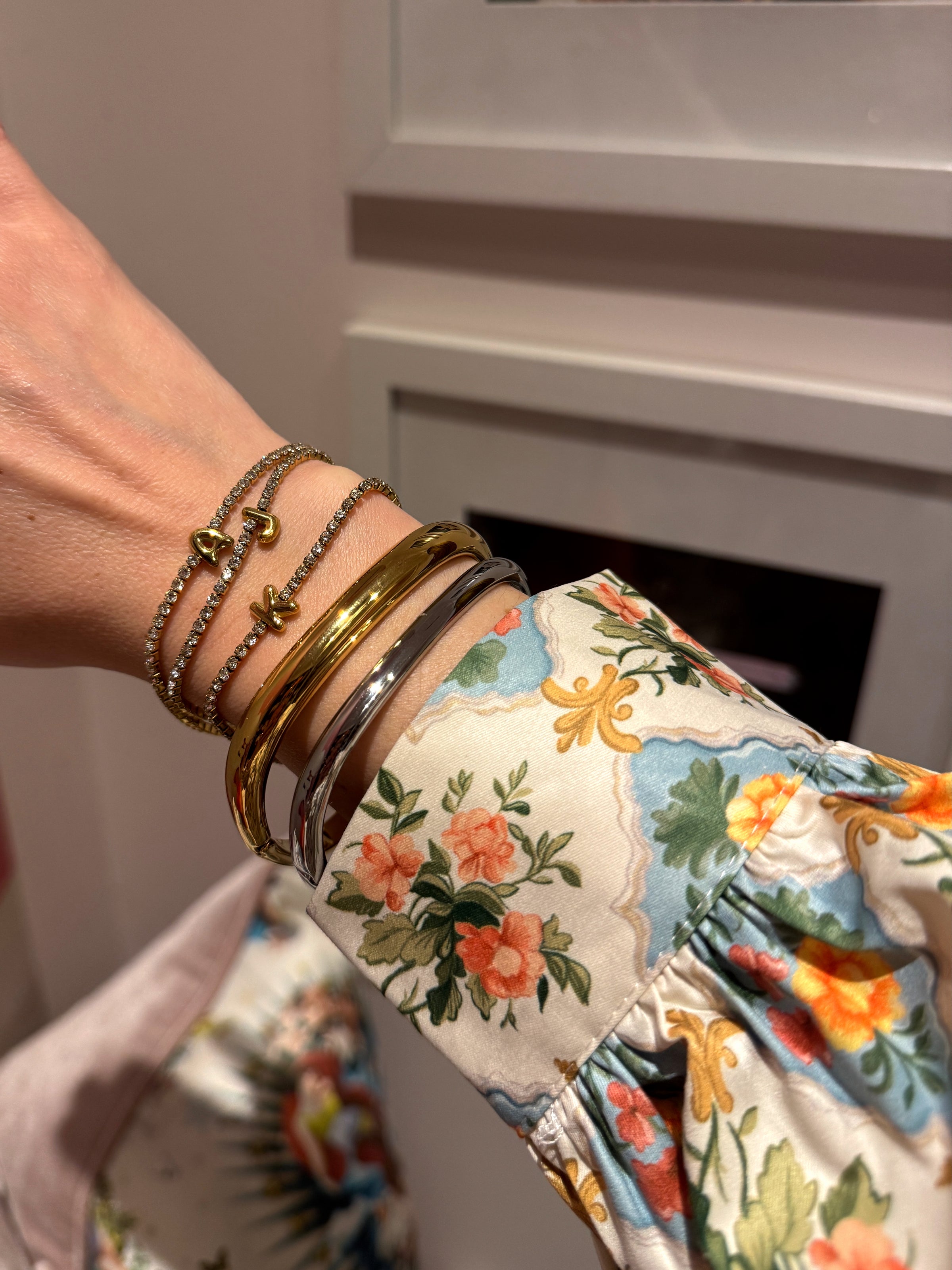 - 18K Gold Non-Tarnish Rhinestone Letter Bracelet