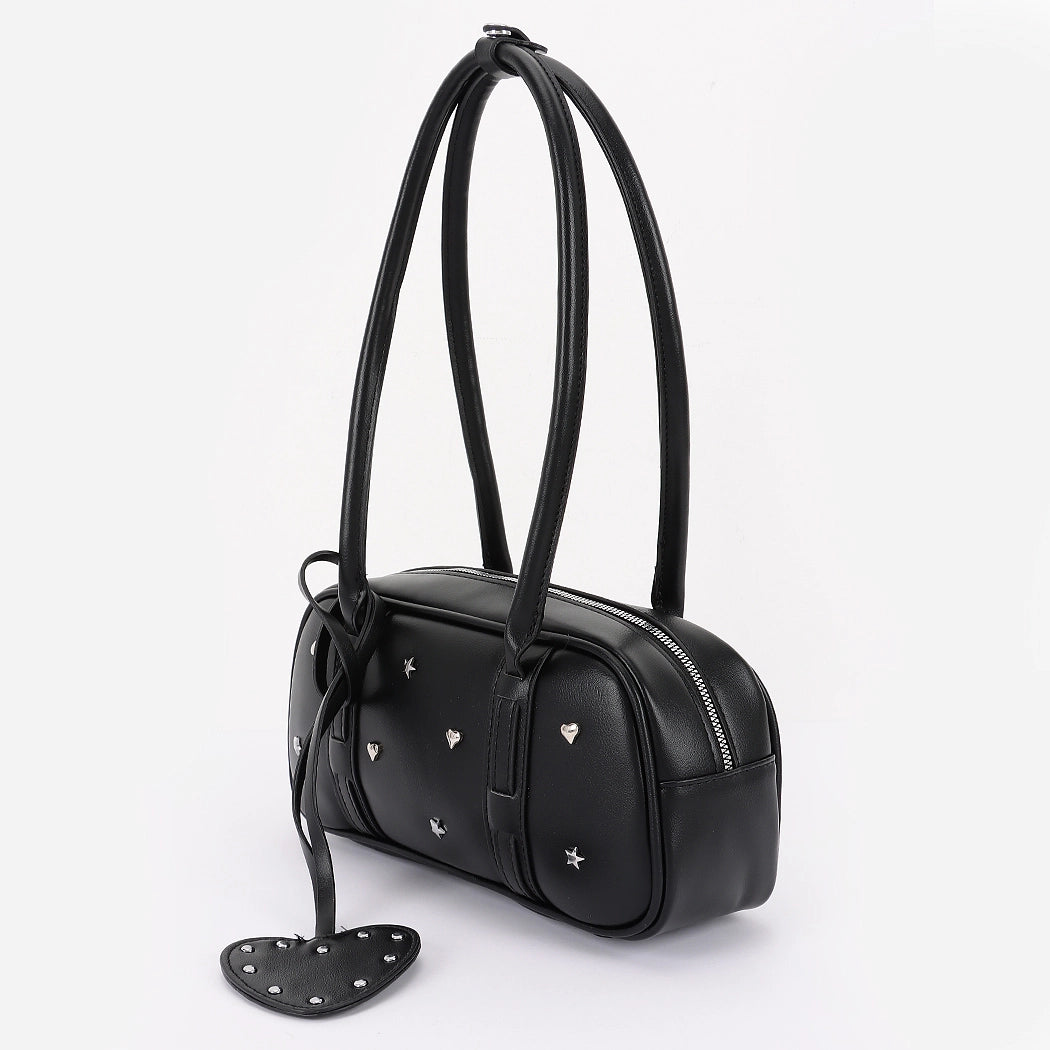 • Vegan Leather Metal Studded Boston Bag