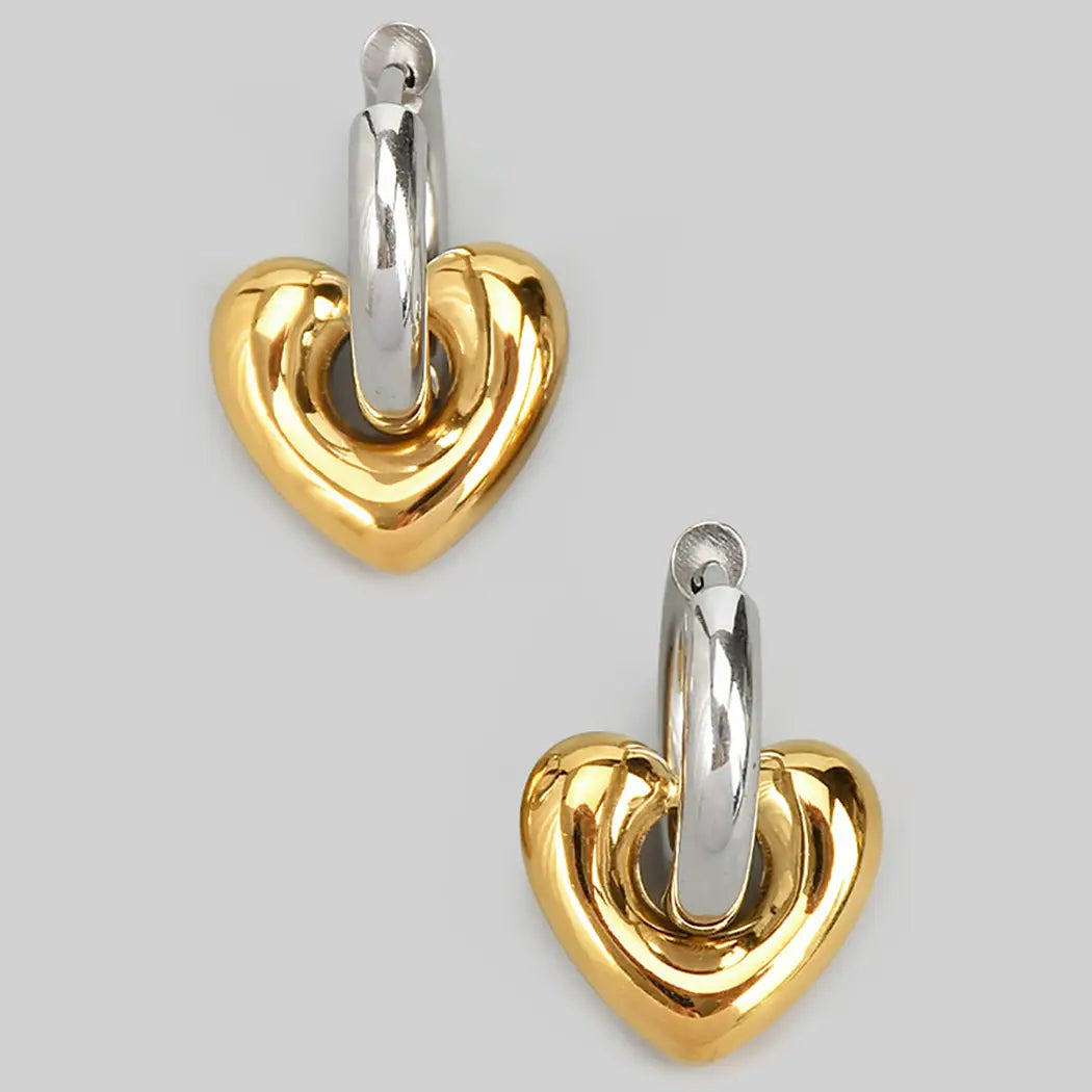 Two Tone Heart Huggies