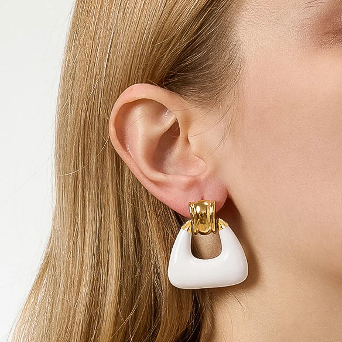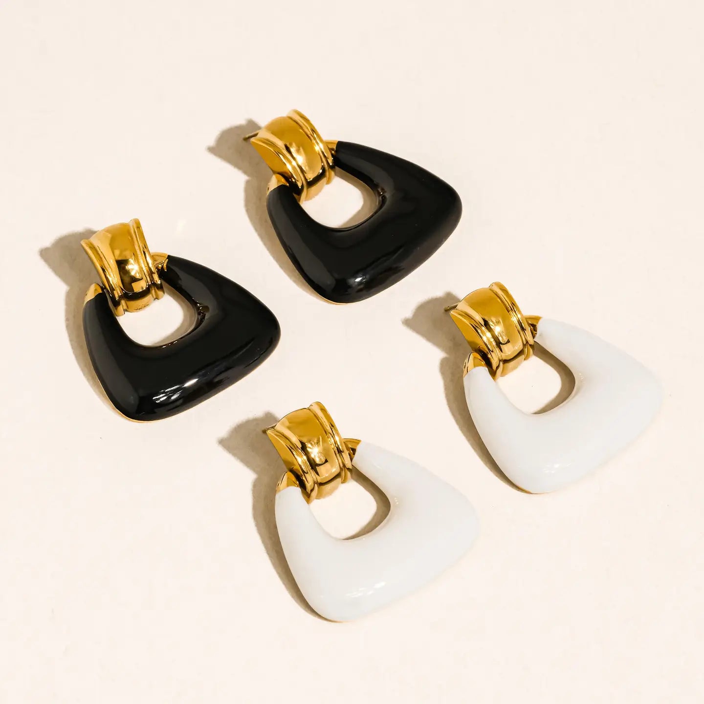 - 18K Gold Non-Tarnish Enamel Geometric Drop Earrings